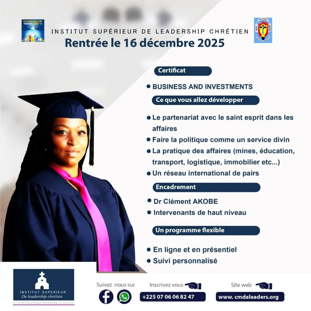Pour s’inscrire, vous pouvez confirmer votre inscription en faisant un acompte de 130.000 F CFA par Orange Money (OM) sur le contact suivant : +225 0707612890